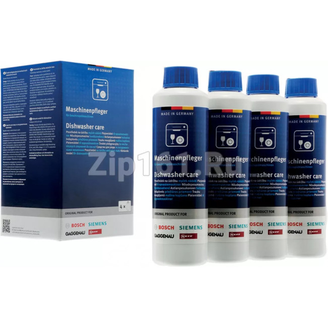 Набор средств для ухода за посудомоечными машинами 00311997 Средство для ухода эффективно удаляет жир и известковый налёт в моечной камере и внутри прибора; а также подходит для очистки уплотнительной резины дверцы Регулярный уход за машиной с помощью средства способен обеспечить безупречный результат мытья посуды и долгий срок службы прибора Просто использовать: одна бутылка средства используется для одной чистки: после снятия специальной металлической плёнки с пробки бутылка устанавливается «вверх ногами» в машину (без посуды), и запускается программа В наборе: 4 х 250 мл, для 4 применений Если вы не уверены в выборе, уточняйте через вопрос совместимость с вашей моделью!