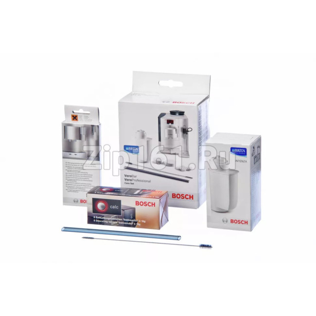 Набор ухода за кофемашинами 00570351 В этом наборе для полностью автоматических кофемашин эспрессо есть всё, что нужно для оптимального ухода за Вашей кофемашиной "VeroProfessional" Содержание набора: 1 специальная щёточка для прочистки патрубков подачи и выдачи молока, 10 таблеток для очистки системы от эфирных масел, 6 таблеток для удаления накипи, 1 фильтр для воды BRITA Intenza и 1 трубочка из плексигласа для подачи молока Чистящие средства и фильтр для воды также доступны для заказа по отдельности: см. арт. 00311560 (таблетки для очистки), арт. 00311556 (таблетки от накипи), арт. 00575491 (фильтр для воды) К набору также приложена наглядная инструкция Если вы не уверены в выборе, уточняйте через вопрос совместимость с вашей моделью!