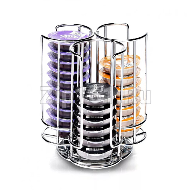 Подставка для Т-дисков Tassimo 00574958Т-диски могут быть размещены в 3 раздельных секцияхПодставка вмещает до 30 T-дисковВращающаяся конструкция обеспечивает отличный обзор всех Т-дисков: легким движением руки вы можете выбрать и достать нужный вам Т-дискПодставка для Т-дисков ТАССИМО изготовлена из стали со специальным хромированным покрытием