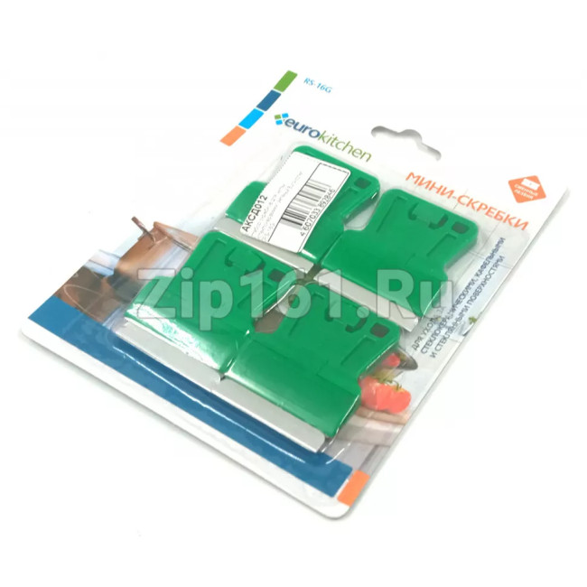 Набор скребков для чистки стеклокерамики, зеленый Eurokitchen RS-16G Длина: 0.16 Ширина в упаковке, м: 0.125 Длина в упаковке, м: 0.16 Высота в упаковке, м: 0.01 Вес в упаковке, кг: 0.05 Цвет: Зеленый Вид индивидуальной упаковки: Блистер Дополнительно: К этому скребку подходят запасные лезвия Eurokitchen RS-B52 Количество предметов в упаковке, шт: 4