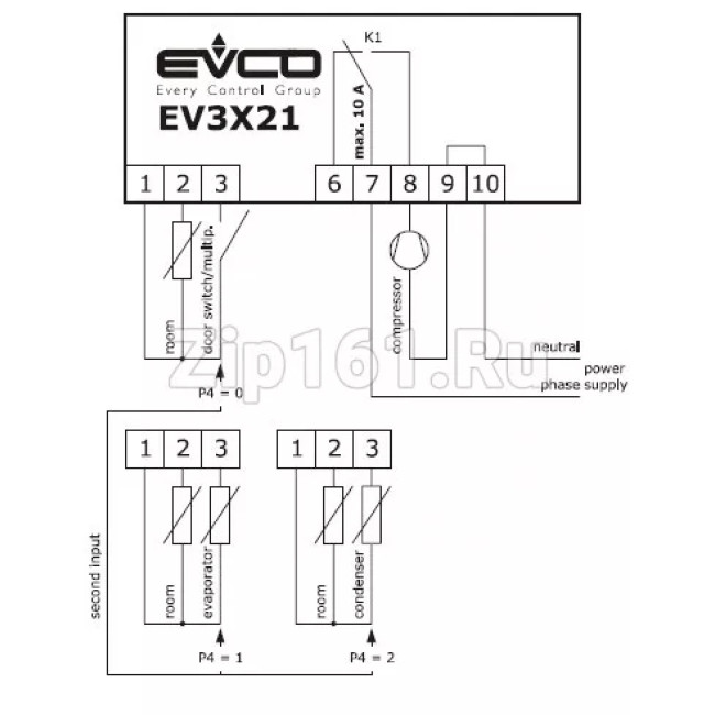 Программируемый контроллер EVCO EV3B21N7 230V 2Hp БЕЗ ДАТЧИКОВ, ID961, 70х63х28мм