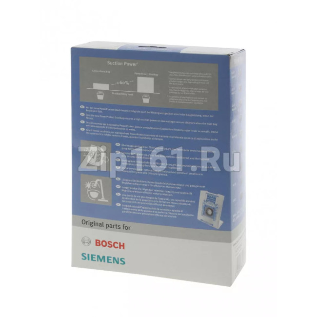 Мешки-пылесборники; тип G, 4 шт 00576863 Новый мешок-пылесборник PowerProtect позволяет обеспечить высокую мощность всасывания, когда пылесборник наполнен, даже у приборов с минимальной мощностью Новейшая технология нетканного материала для долгого срока службы Внутренняя ячеистая структура мешка позволяет улучшить качество фильтрации Мешки для пылесоса подходят для всех моделей современных пылесосов : BSGL5.. (GL-50 Free'e), BGL45.., BGL8.. (In'genius ProSilence и Home Professional), BGB45.. (Maxx'x), BGL4.. (GL-40), BGL35.. (MoveOn), BGL3.., BSGL3.. (GL-30), BGL2.. (GL-20), BSG6.. (Logo), BSG4.., BSG7.., BSGL2.., BSA.., BSD.., BSF.., BBS.., BSC..; за исключением серий BSG8.., BSN.., BSG1.. В упаковке: 4 мешка-пылесборника с клапаном-задвижкой, 1 сменный микрофильтр Мощность всасывания при заполнении мешка до 60% выше, чем у предыдущих моделей мешков-пылесборников Максимальная гигиеничность: фильтрация до 99,9%