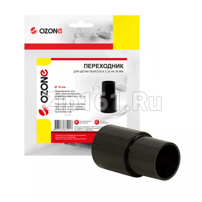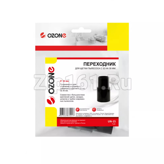 Переходник универсальный для бытового пылесоса, 1 шт. Позволяет использовать щетки и насадки с диаметром соединения 32 мм с удлинительными трубками диаметром 35 мм, бренд: OZONE, арт. UN-15 Особенности: Для насадок-щеток Диаметр посадочный, мм: 32 Ширина в упаковке, м: 0.19 Длина в упаковке, м: 0.2 Высота в упаковке, м: 0.04 Вес в упаковке, кг: 0.025 Материал: Пластик Вид индивидуальной упаковки: Пакет Количество предметов в упаковке, шт: 1 Если вы не уверены в выборе, уточняйте через вопрос совместимость с вашей моделью!