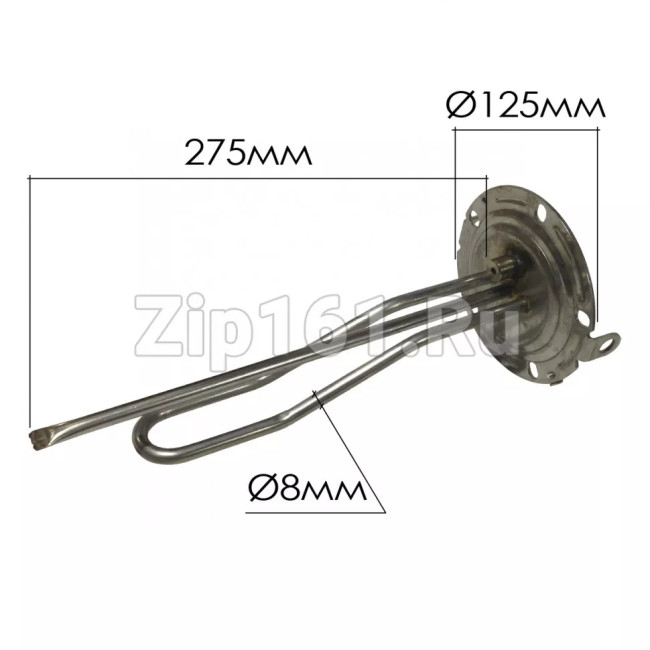 Тэн для водонагревателя 1000W для Аристон серии Velis 65152105 Технические характеристики: Длина: 290мм; Диаметр фланца: 125мм;