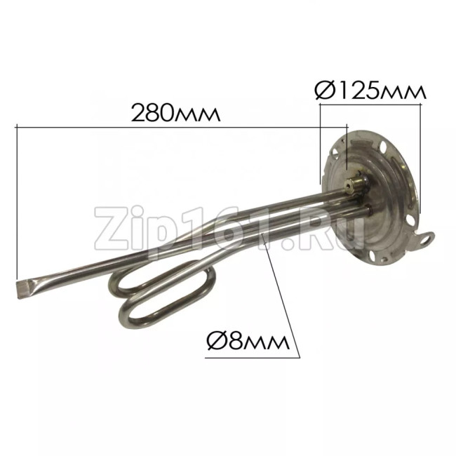 Тэн для водонагревателя 1500W для Аристон серии Velis 65152106 Технические характеристики: Длина: 290мм; Диаметр фланца: 125мм;