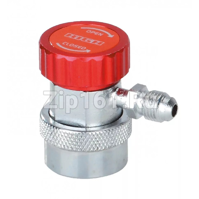Быстросъемный адаптер высокого давления (под углом 90, резьба 1/4 SAE наружн.) QC-18H Быстросъёмная муфта DSZH QC-18H предназначена для подсоединения к порту высокого давления автомобильного кондиционера без открытия доступа к системе циркуляции хладагента R134a. Поворот вентиля по часовой стрелке приводит в действие механизм опускания штока-депрессора, который нажимает на золотник и, тем самым, открывает доступ к системе циркуляции хладагента. Вентиль позволяет избежать механических поломок, связанных с физическим сопротивлением внутреннему давлению системы. Без вентиля, пытаясь подсоединить порт, возможно сломать трубку, на которой расположен порт.