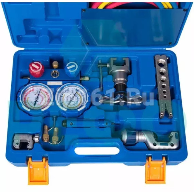 Комплект : Разбортовка VFT-808-I, Труборез VTC-28B, Труборез VTC-19, Риммер VTT-5, 2 адаптера V01-V08, манометрический коллектор VMG-2 (R410A, R134a, R22, R407С), Кейс.